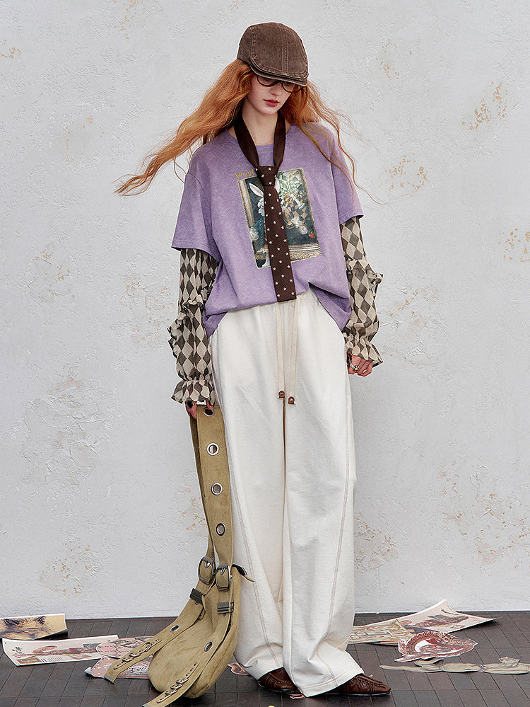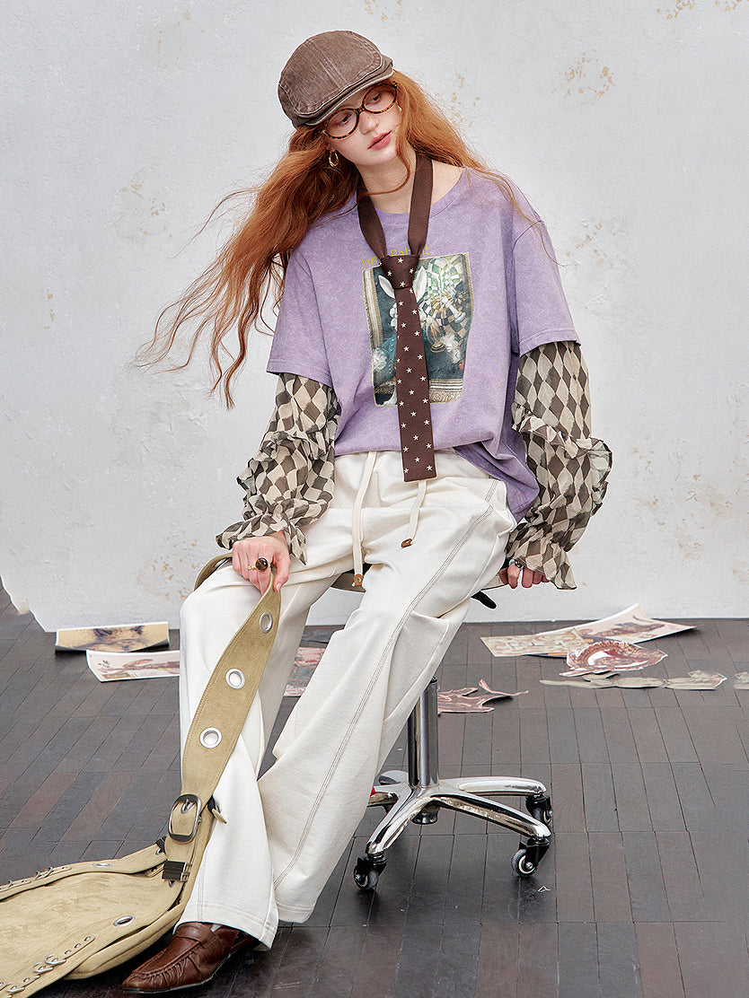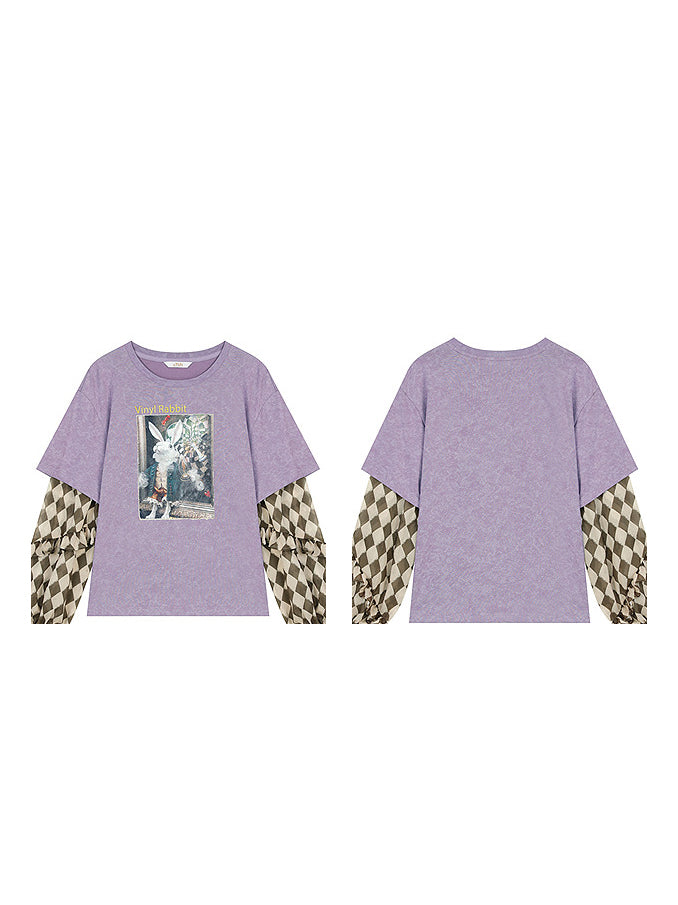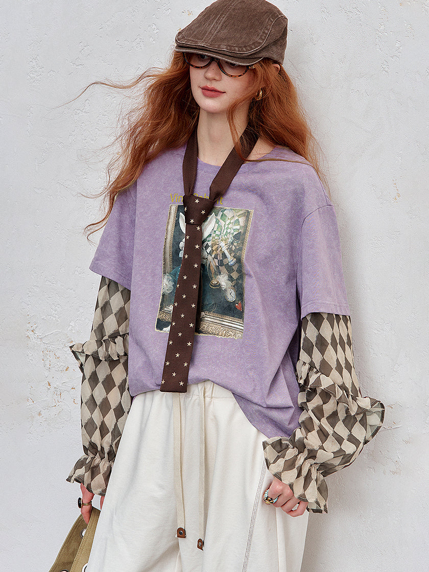 - ・ムラ感のある天竺ボディに、シアーな菱形チェック袖を重ねたレイヤードデザイン